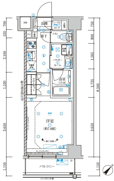 洋室 7.6帖/K 2.0帖 - 向き